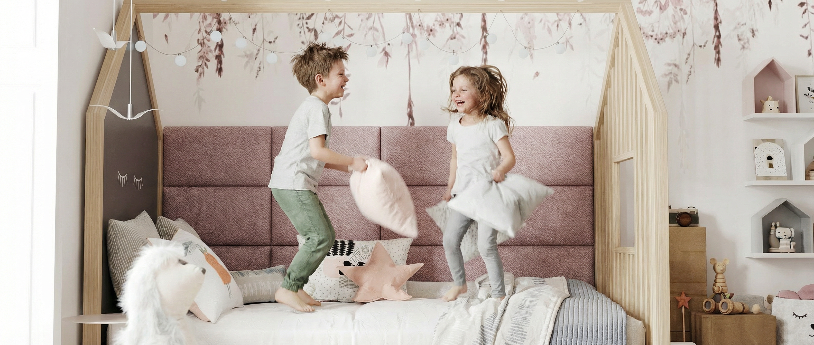 Wir machen alle Modelle auch als Maßanfertigung.Kinderzimmer Jetzt AnfragenRäume, die mitwachsen. Softwalls sorgen für eine angenehmere Akustik, schützen Wände und schaffen ein weiches, sicheres Umfeld. Robust, pflegeleicht und wohnlich. Für Kinderzimmer voller Leben, Fantasie und Ruhe zwischendurch.